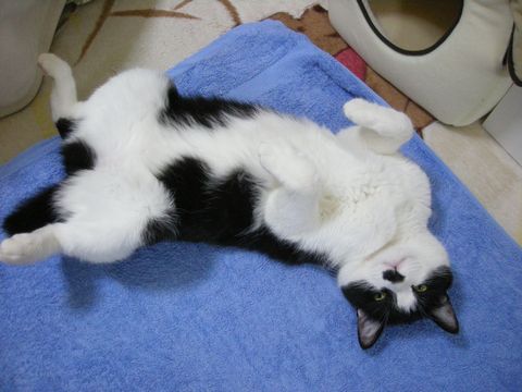 こちらが気付いたのがわかると、今度はごろ~んとして手が出てきました。