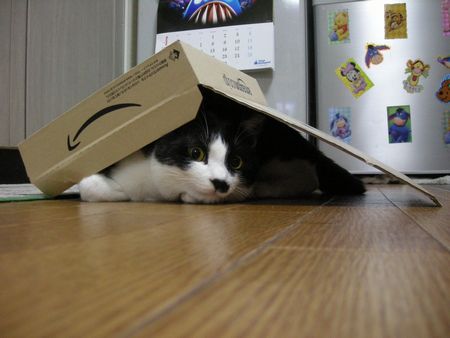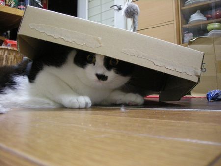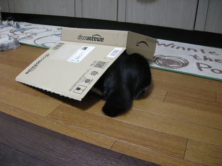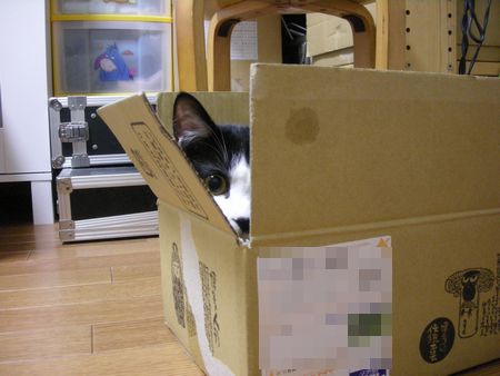 冷蔵庫の下やお気に入りのダンボール箱の中とか敷物の下とか。