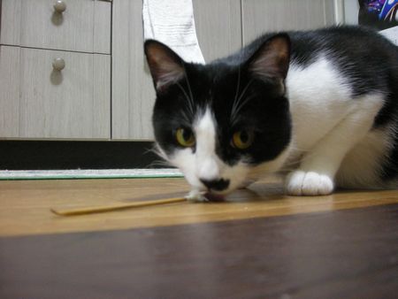 上手にくわえることができました。なんとも得意気な表情!