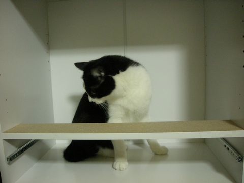 (カロが飛び乗ってしまう)棚の拭き掃除をしたり・・・。