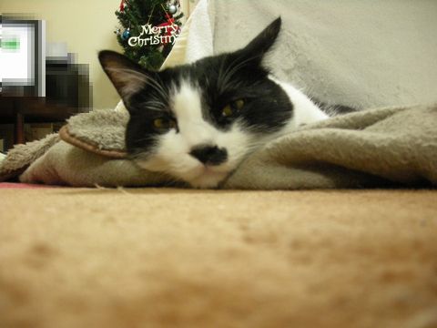 カロも、朝起きてコタツに直行です。